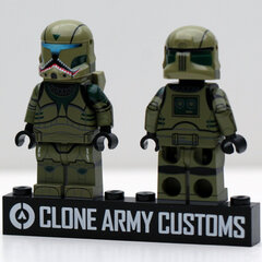 Olive green commando with dark green markings as well as red and white teeth marks