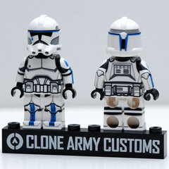 Tup has mostly white armor with limited blue markings. Remember, Good soldiers follow orders.