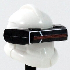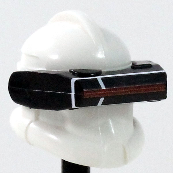Detail shdw macrobinoculars with white markings and a dark red visor